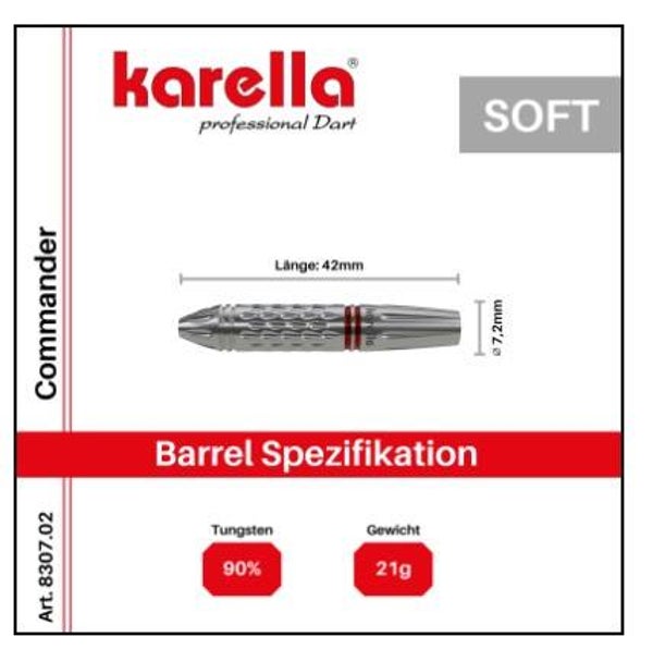 Softdart Karella Commander, silber, 90% Tungsten, 19g oder 21g