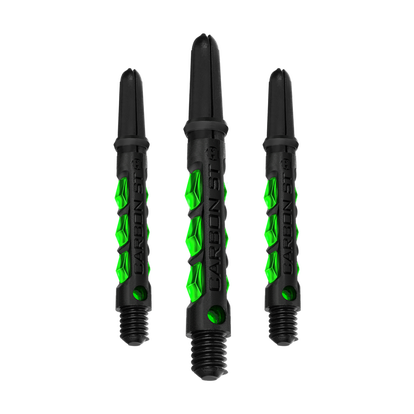 Schwarze Harrows Carbon ST Shafts mit farbigen, transparenten Kunststoff Einsätzen.