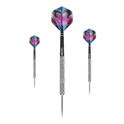 Die Vengeance Evolution-Technologie integriert das gesamte maschinelle Know-how von Red Dragon und bietet alles, was moderne Spieler benötigen: hervorragender Grip, atemberaubendes Design, präzise Haftung und effiziente Wurfenergie.