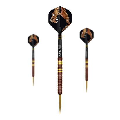 Die Snakebite Copper Fusion Darts hatten Ihren ersten großen Auftritt bei den Nordic Darts Masters 2023 und konnten auf Anhieb überzeugen. Die Kombination aus direkter Kraft und ausgewogener Sensibilität ermöglicht es Snakebite, seinen Wurfdruck je nach gewünschtem Wurf anzupassen. Der parallele Barrel zeichnet sich durch symmetrische Ringe auf der Vorderseite und mehrere Rillen auf der Rückseite aus, die mit einer schönen PVD-Beschichtung mit Kupfereffekt versehen wurden. Die echt vergoldeten Ringe vervollständigen das spannende Design.